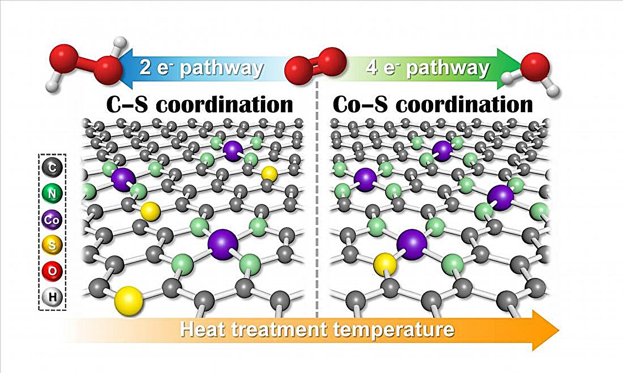 The researchers focused on single-atom catalysts, in which isolated cobalt atoms are dispersed across a carbon framework. These catalysts are efficient but highly sensitive to their local atomic environment. When oxygen binds too strongly to the active site, the reaction tends to fully reduce oxygen to water, rather than forming hydrogen peroxide.